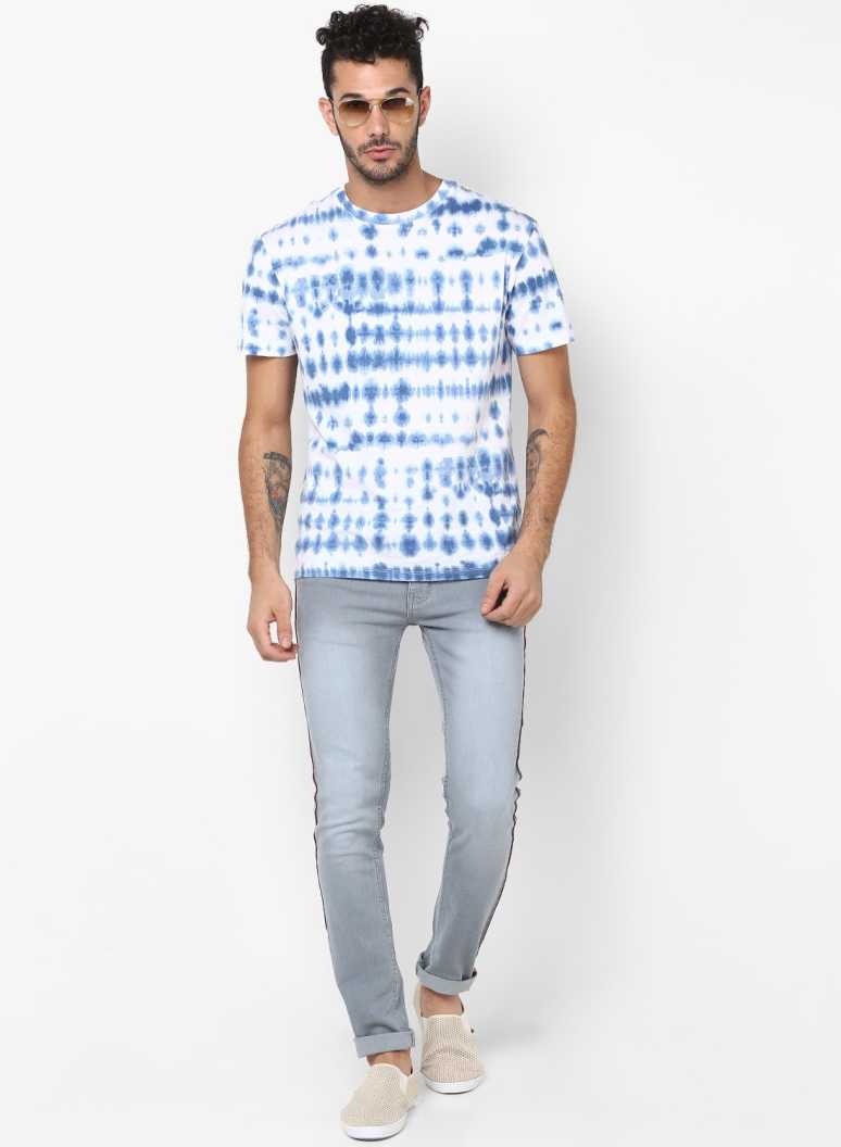 Sky Blue And White Tie-Dye Print Half Sleeves Shirt
