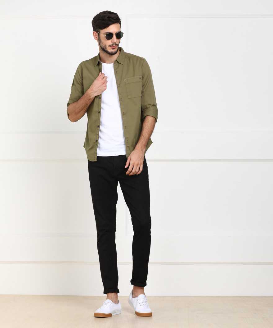 Men Slim Fit Solid Casual Shirt