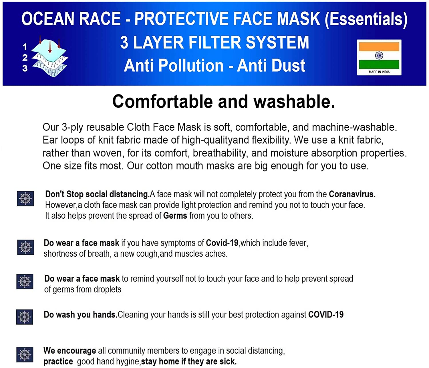 Comfortable and washable.-Our 3-ply reusable Cloth Face Mask is soft, comfortable, and machine-washable. Ear loops of knit fabric made of high-quality and flexibility. One size fits most. Our cotton mouth masks are big enough for you to use.