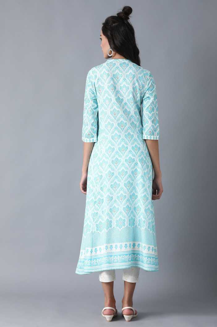Women Block Print Viscose Flared Kurta (Blue)