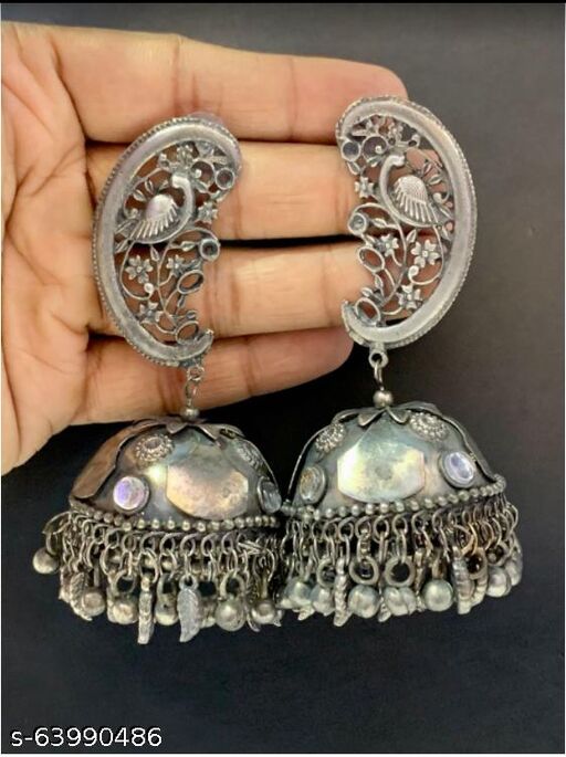 Primis Presents Traditional Fashionable German silver plated Jhumki Jhumka earrings for Pretty Girls And Women.German Silver Plated Jhumka Jhumki Earrings Rama Creations Modern Oxidised Tribal Peacock Stylish Fashion Jewellery Fancy Party Wear For Women/girls Stylish and Trendy German silver plated Jhumki Jhumka earrings from the Perfect for all occasions. Primis Peacock Design German Silver Earrings Oxidised Silver Plated Jhumka Jhumki Earrings For Girls Women All our Jewellery is Extreme Good quality, Anti-allergic, High Gold Polish, rust and corrosion resistant. No lead or Nickel so it won’t irritate your skin. No Shisha hence light weight. The highest quality of gold plating further ensures a long-lasting shine. Instruction - No direct Perfume/Deo/Chemicals on the Jewellery. It is advisable to store jewellery in an air-tight container. First wear your makeup, perfume - then wear your jewellery. Clean it with dry and soft cloth after wearing. This will keep your jewellery shining for years.Traditional Afghani Vintage Oxidised German Silver Tribal Hoop Dangler Hanging Mirror Chandbali Stud Designer Earring Ethnic Antique Jewellery for Girls earrings for women stylish