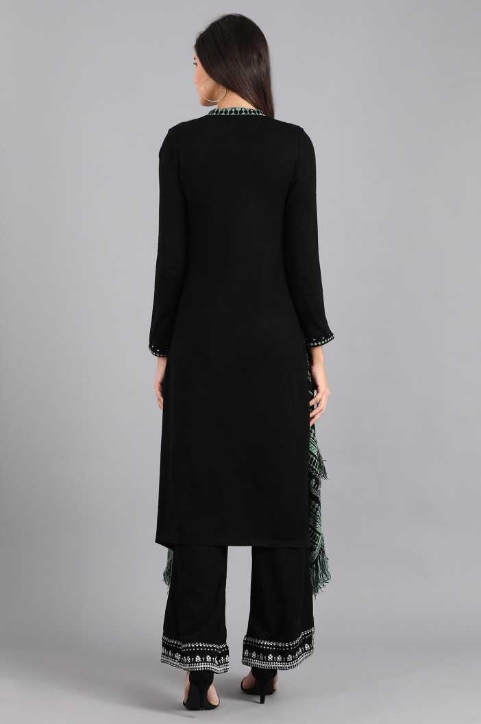 Ada Hand-Embroidered Black Chikankari Straight Kurta