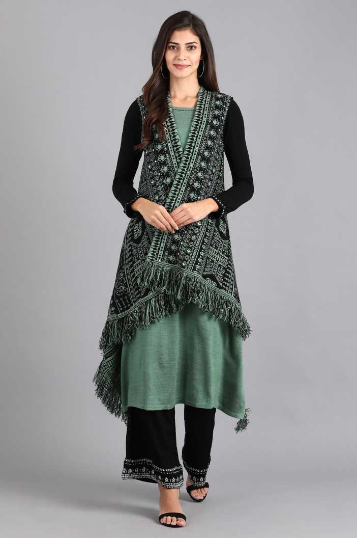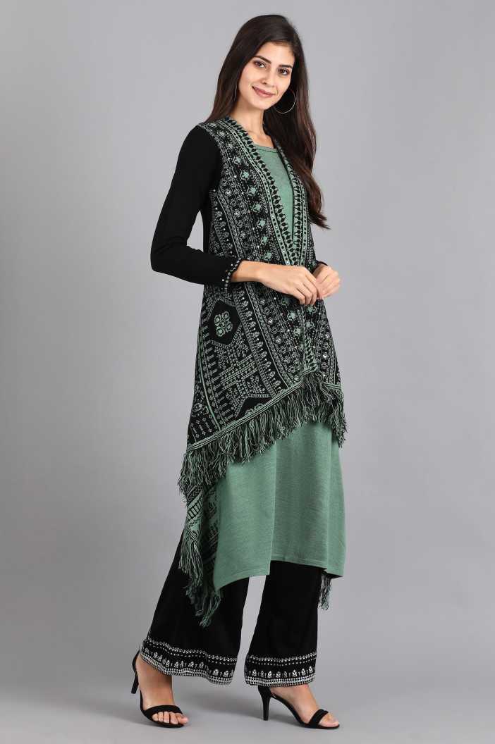 Women Aztec Acrylic Blend A-line Kurta (Green)