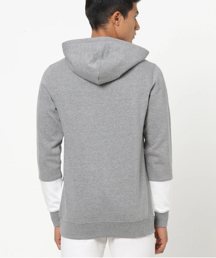 Layer up this Winter season with this Grey Melange - White Hoodie Color Block Sweatshirt. Style this sweatshirt with a pair of pants and sneakers for a smart look. Ditch the heater, your outfit's gonna create enough heat!