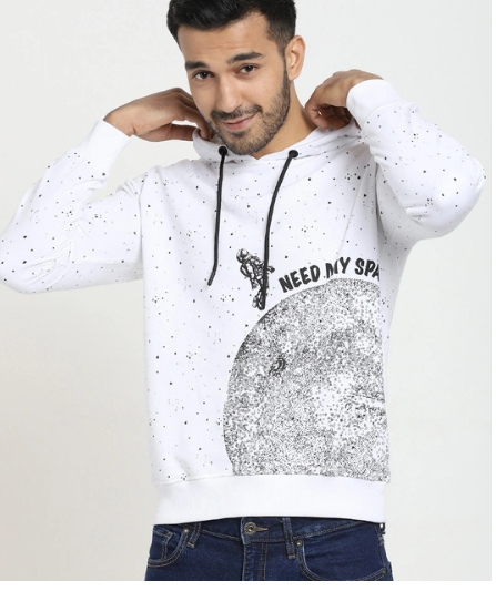Don't sweat about looking good, this Need My Space Men's White Hoodie Sweatshirt. Team this popular favorite with joggers, sliders and sling man purse for an edgy but relaxed look.
