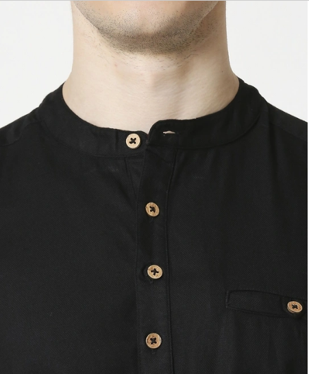 Create the best look out of you with this Men's Relaxed Fit Black Solid Short Kurta. Wear this comfortable kurta with any solid or striped pants and a pair of juttis to enhance your outfit.