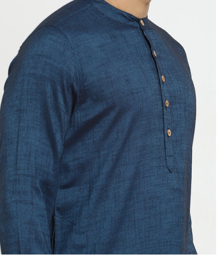 Navy Solid Mandarin Neck Long Kurta