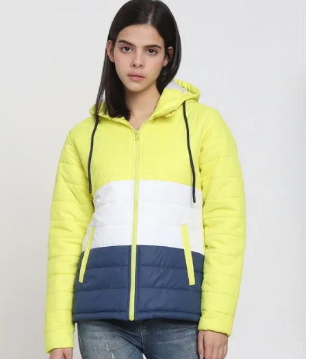 Say bye to harsh winter winds with this Women's Color Block Puffer Jacket. style this cool jacket with denim pants, quirky shades and minimal accessories for a chic look.