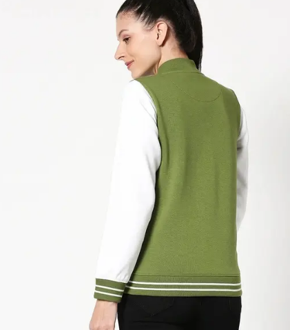 This Women's Olive Varsity Bomber Jacket is the perfect mix of utility & fashion - keeps you warm & stylish! Pair it with a cute top & slim joggers for an athle-chic look.