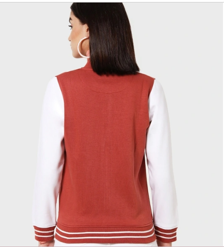 Flaunt a cool look in this Marsala Varsity Bomber Jacket. Style this jacket with a t-shirt, a pair of jeans, and sliders for a classy look.