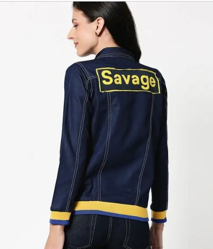 Groove into your style with this Savage Varsity Women's Denim Jacket. You can team it up with a pair of joggers, tank top and sandals for a chic look.