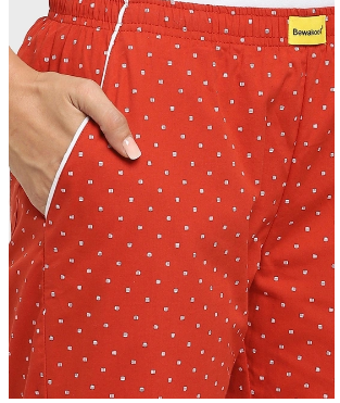 Relax to the max in these Red Women's AOP Geometric Print C Pyjamas. Style these pyjamas with a tank top and a pair of sneakers for a house party with friends.