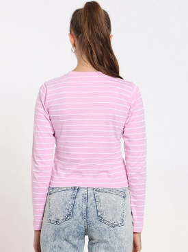 Dress like a fashion influencer with this Women's Hashtag Pink Stripe Full Sleeve T-Shirt. Pair this t-shirt with flared jeans, flat sandals and a mini bag for a stylish look.