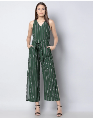 This jumpsuit is what will make those mundane days a little more exciting. With green stripes, this one comes with a V-neck and an attached fabric belt. Style Tip: Pair this with a headband for a fun trendy look.
