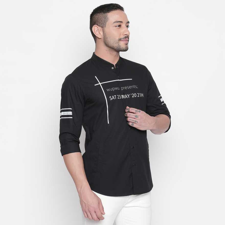 Black Brush Stroke Print Half Sleeves Shirt
