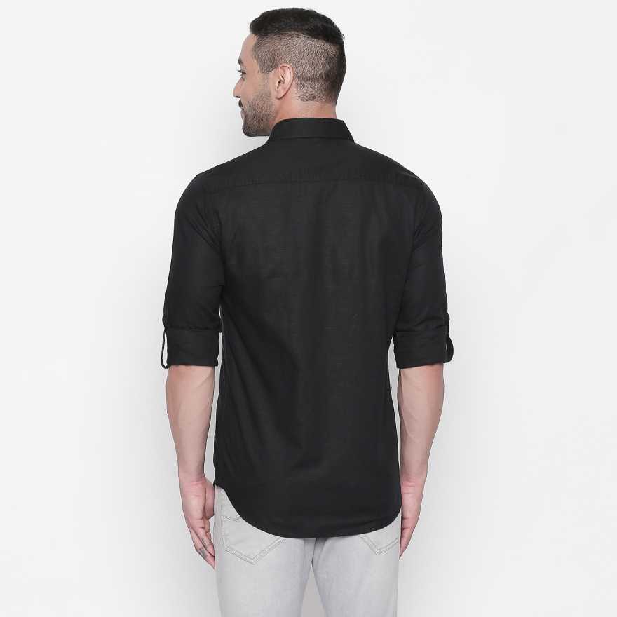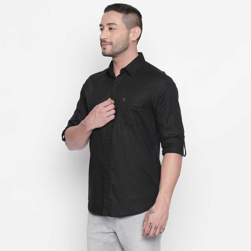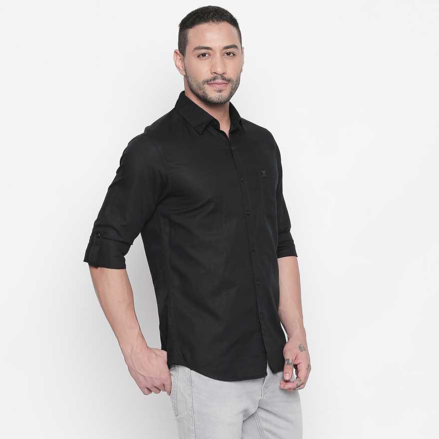 Men Slim Fit Solid Spread Collar Casual Shirt