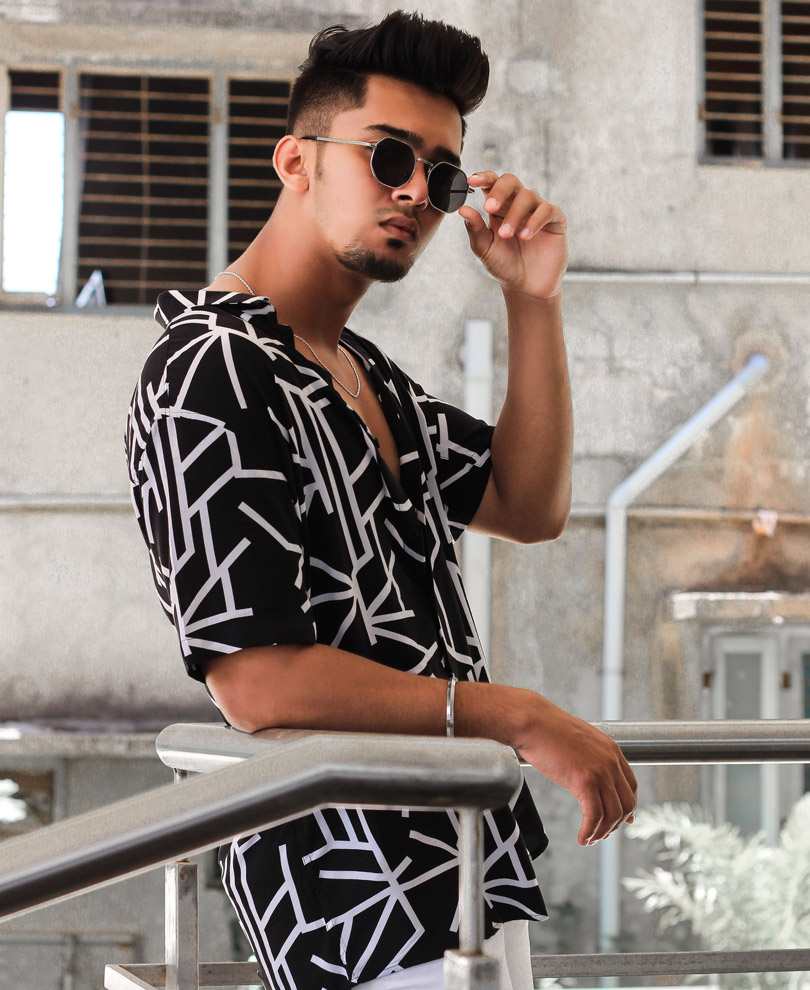 Urban Mix Print Multi Color Oversize Drop Shoulder Shirt