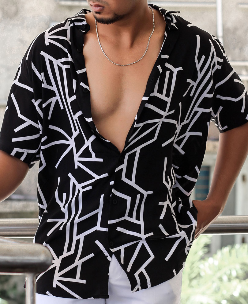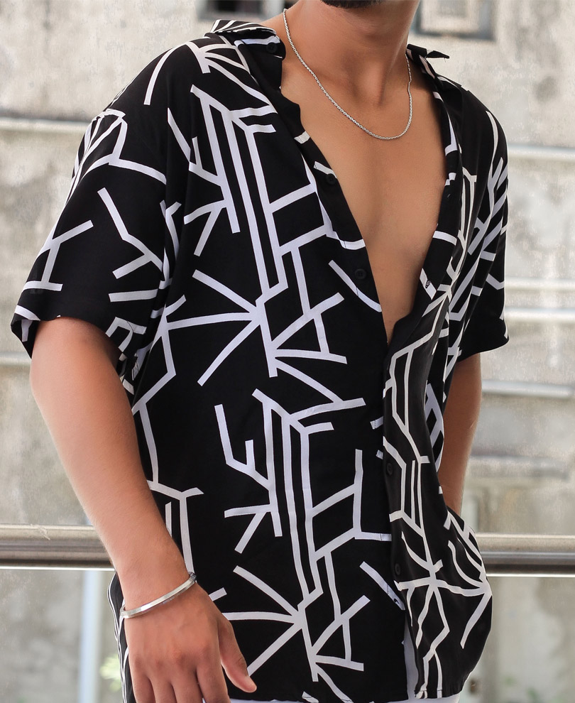 Black and Green Tie-dye Print Half Sleeves Shirt