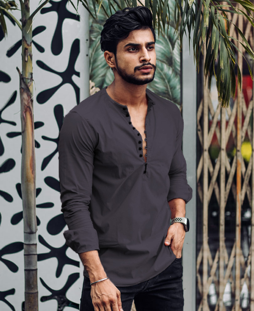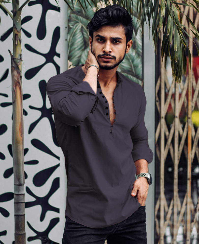 Grey Plain Kurta Full Sleeves Shirt