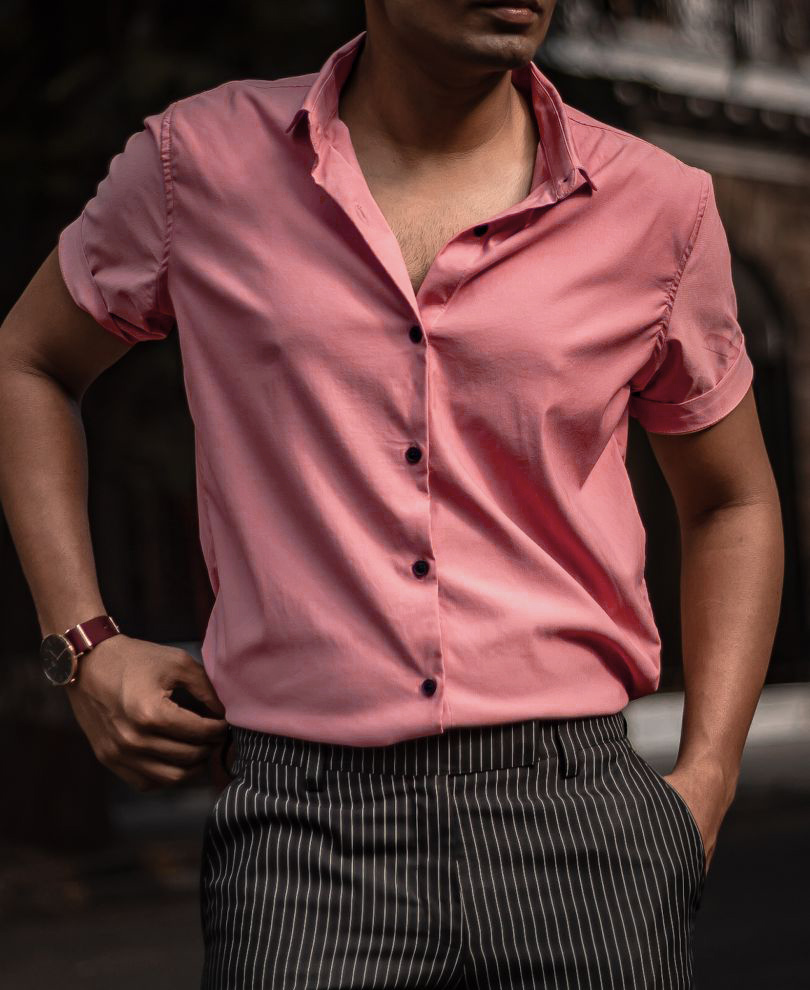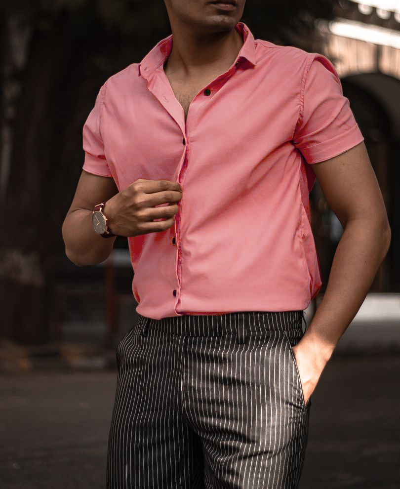 Red and Blue Casual Stripe Half Sleeves Shirt