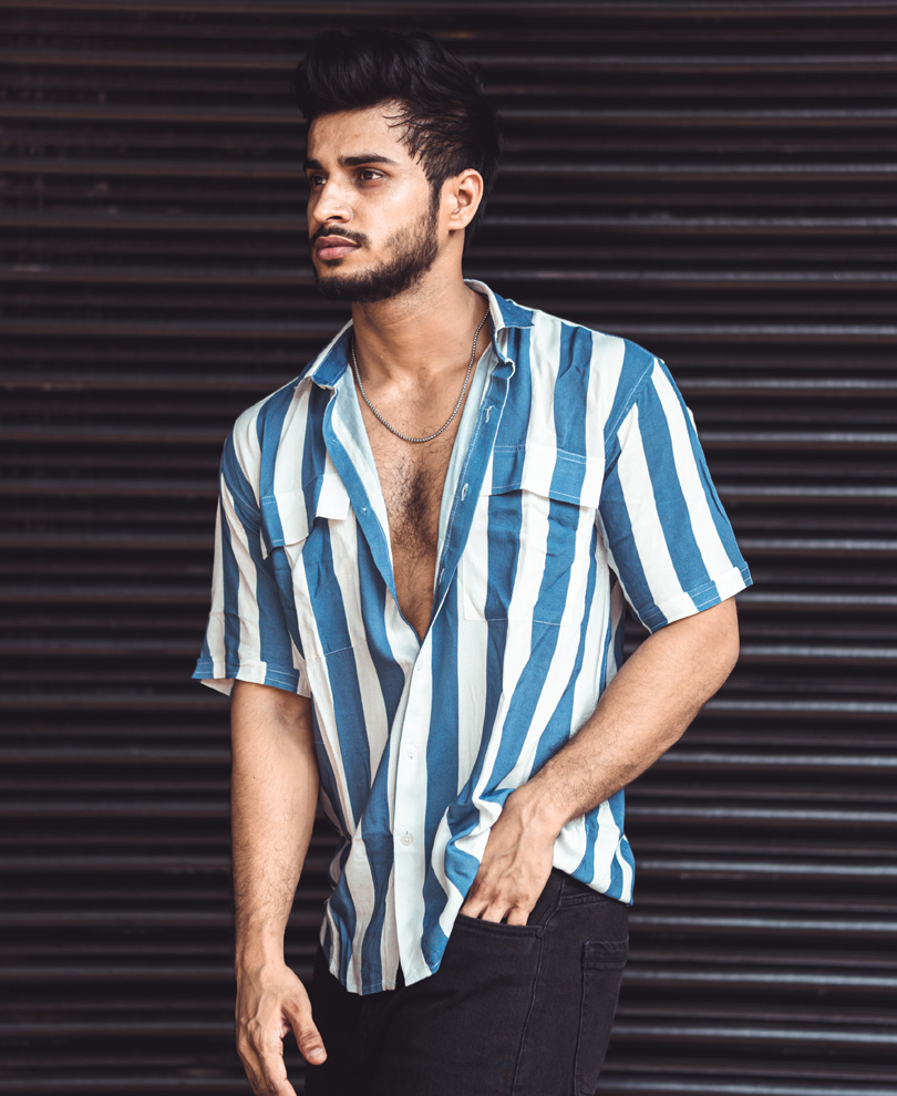 White And Blue Vertical Stripe Pocket Oversize Drop Shoulder Shirt