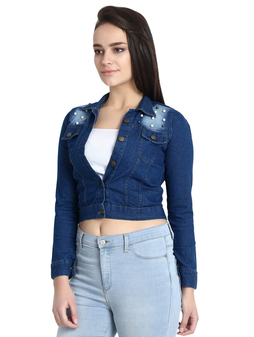 Pearl Embellished Distressed Jacket