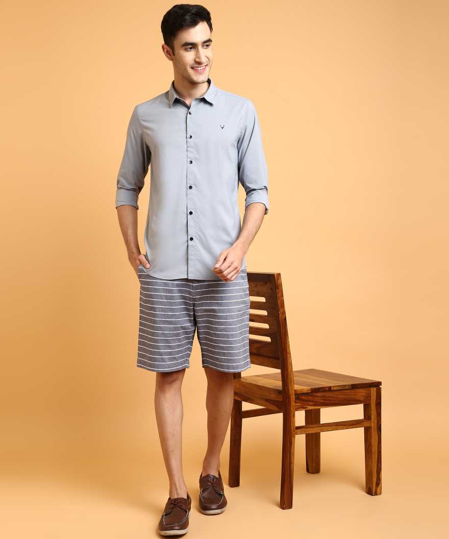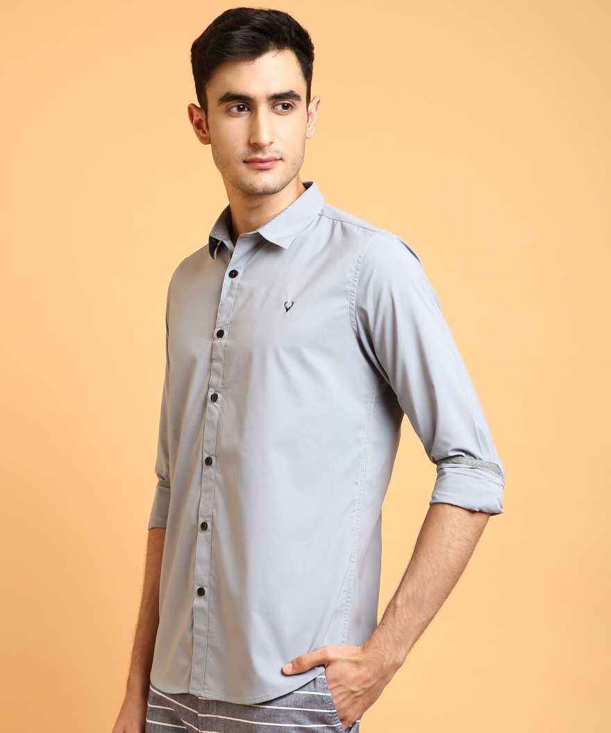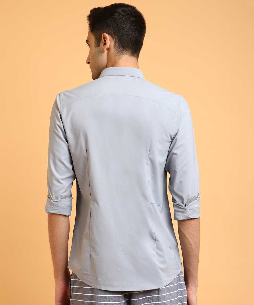 Men Super Slim Fit Solid Cut Away Collar Casual Shirt