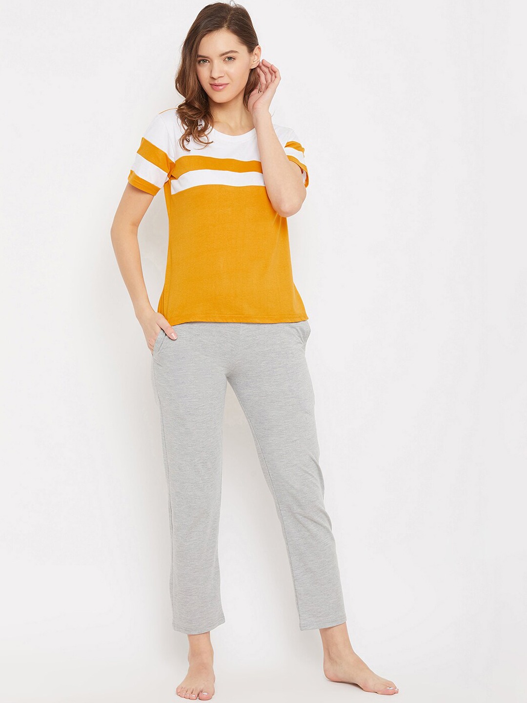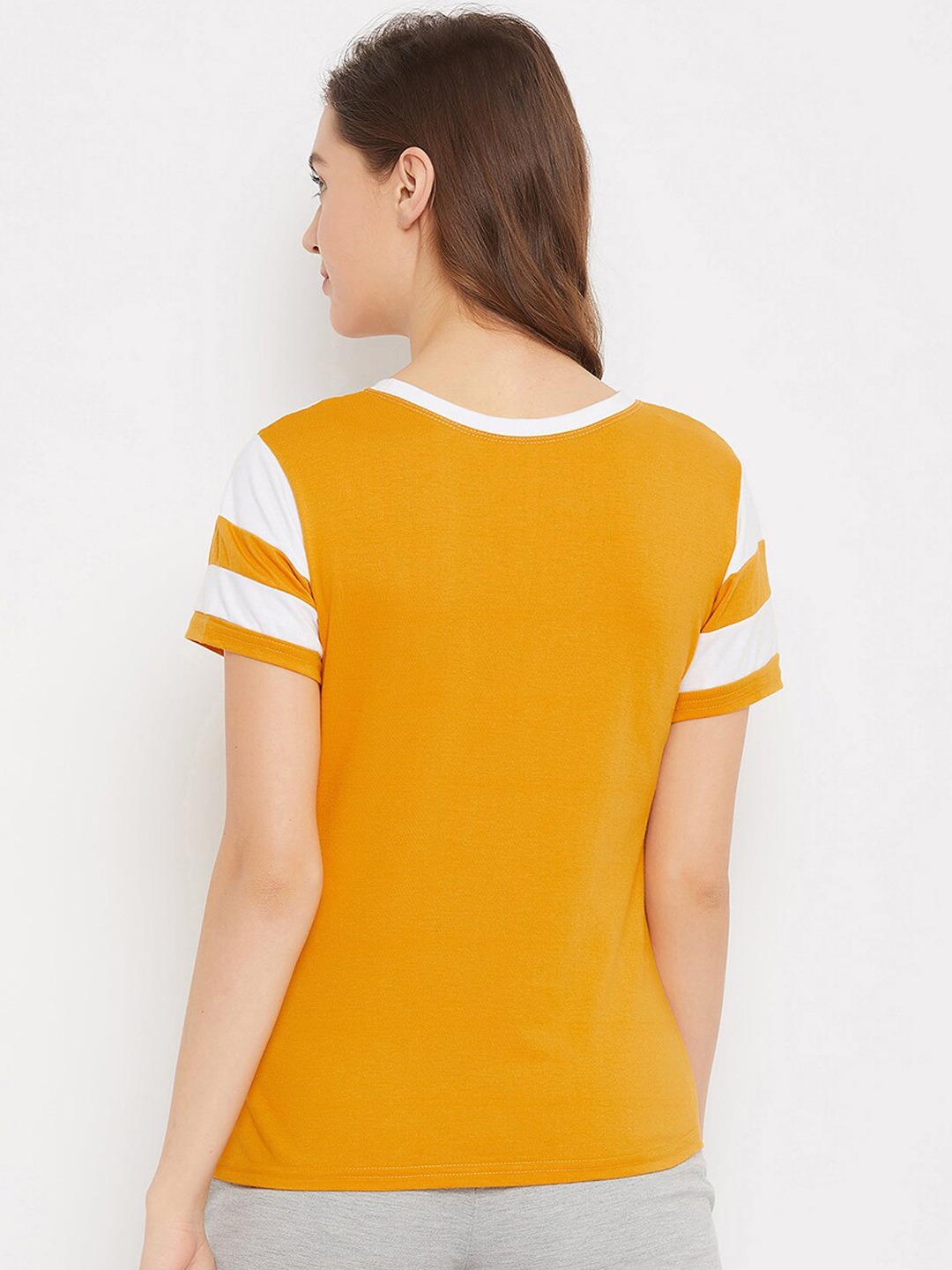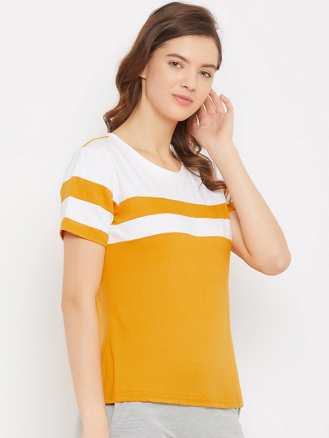 Women Orange & White Colourblocked Round Neck Lounge T-Shirt