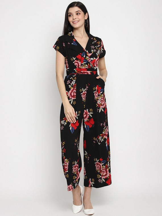 Tie Back Floral Full Leg Jumpsuit