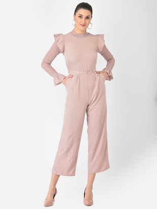 Frill Detail Solid Full Leg Jumpsuit
