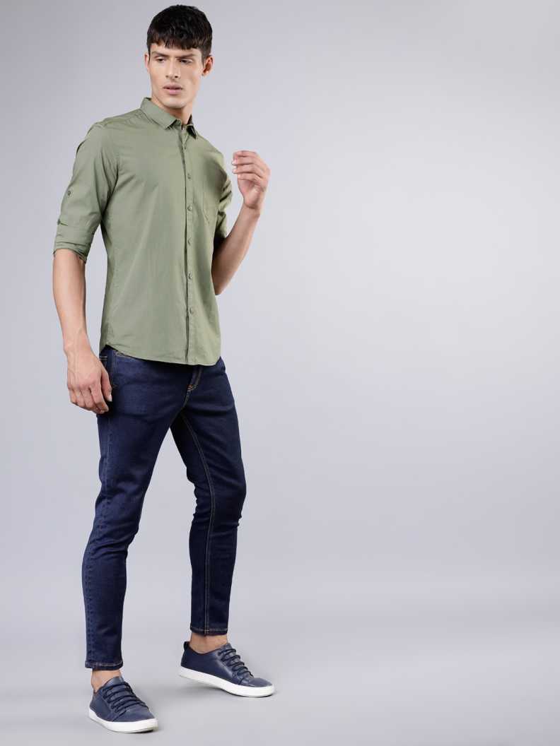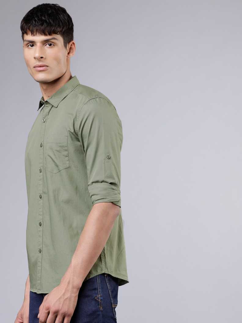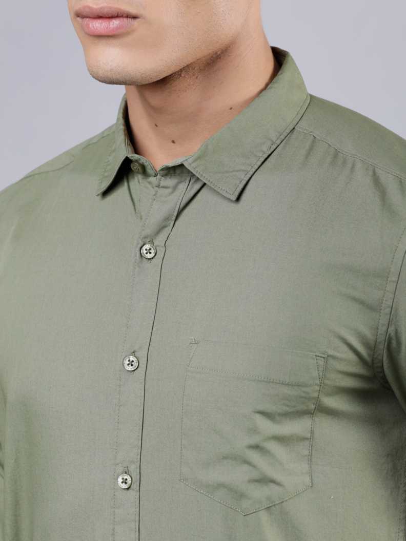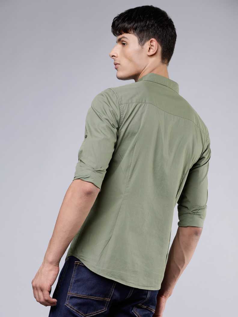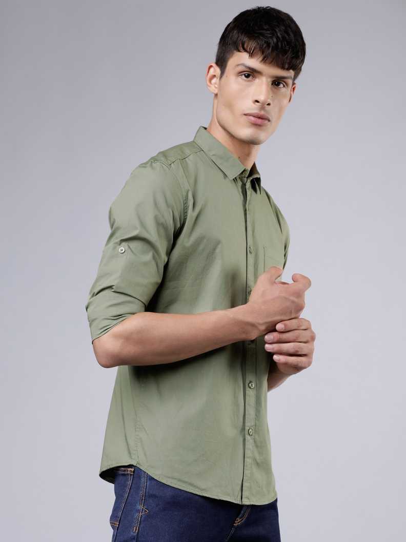 Men Slim Fit Solid Spread Collar Casual Shirt