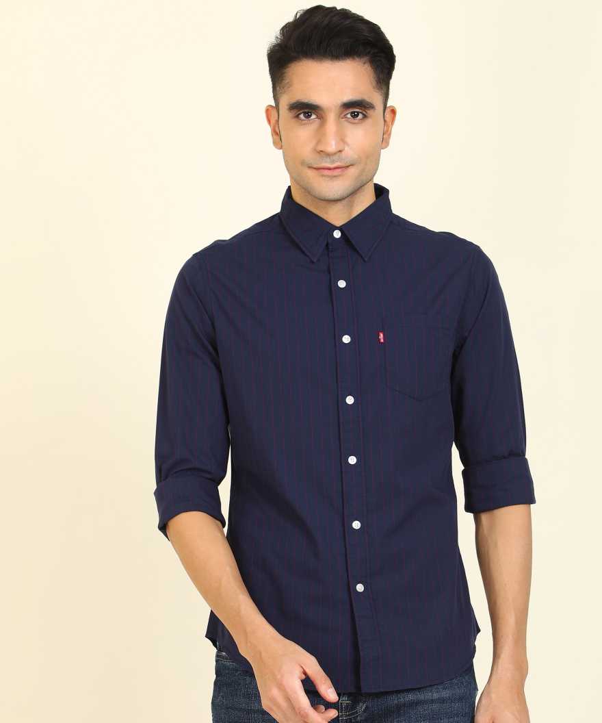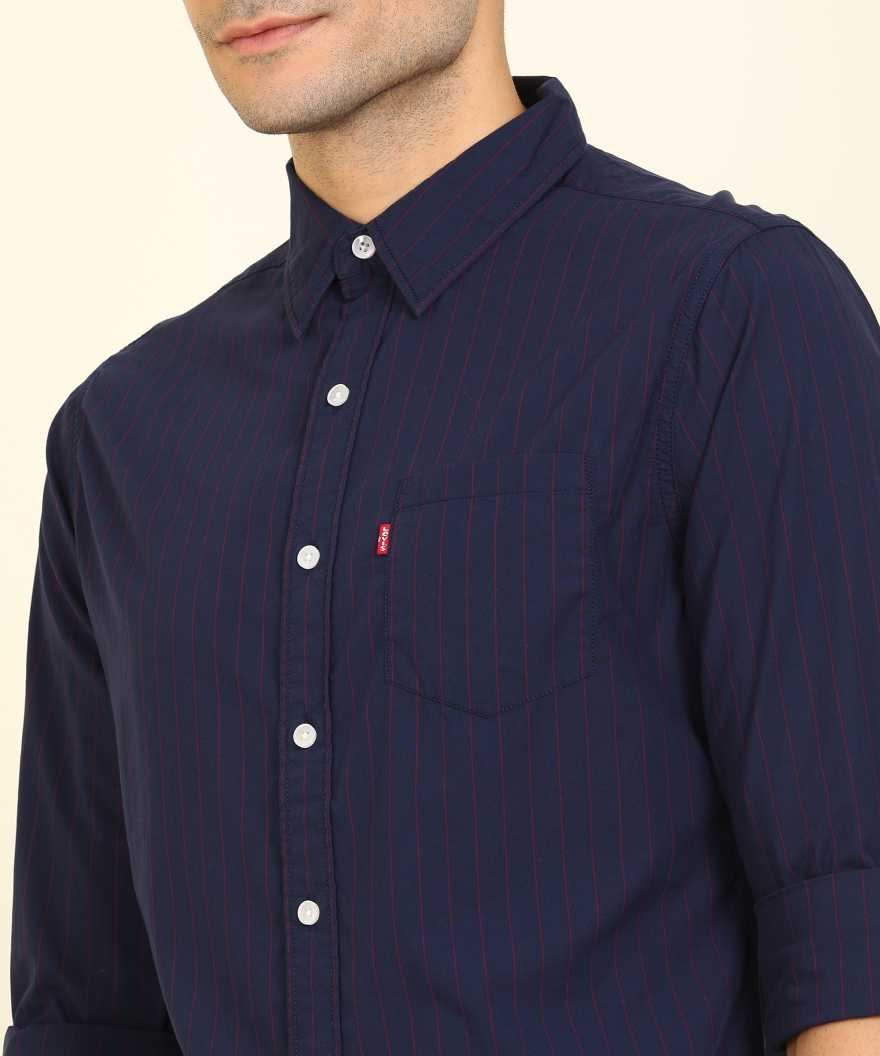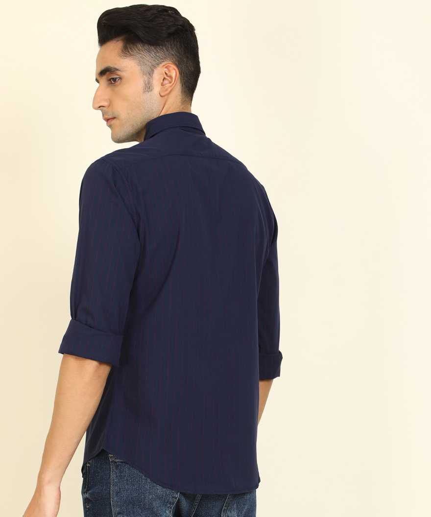 Men Slim Fit Striped Spread Collar Casual Shirt